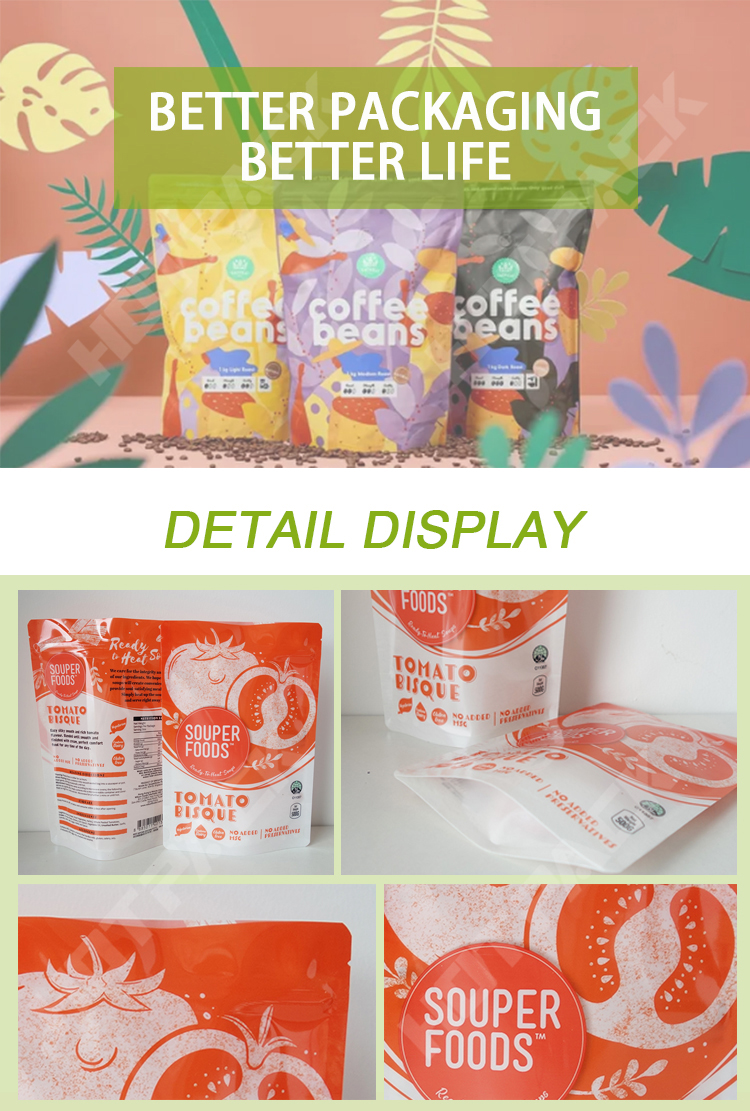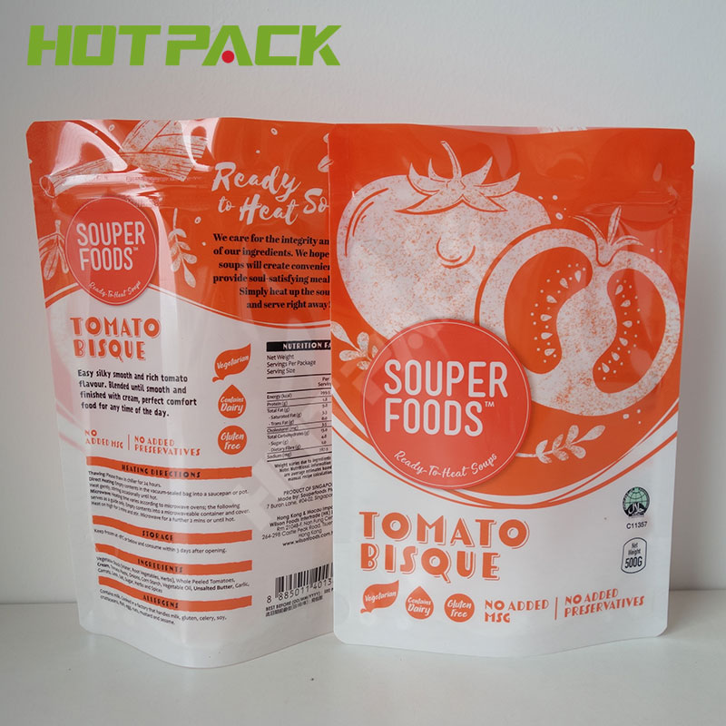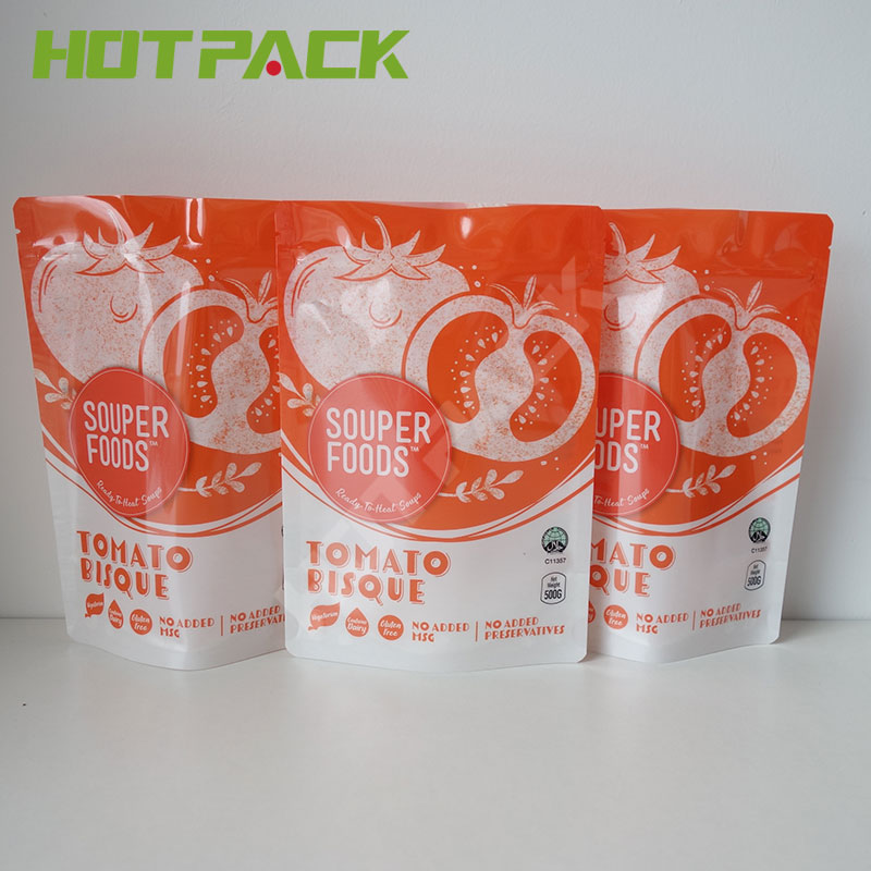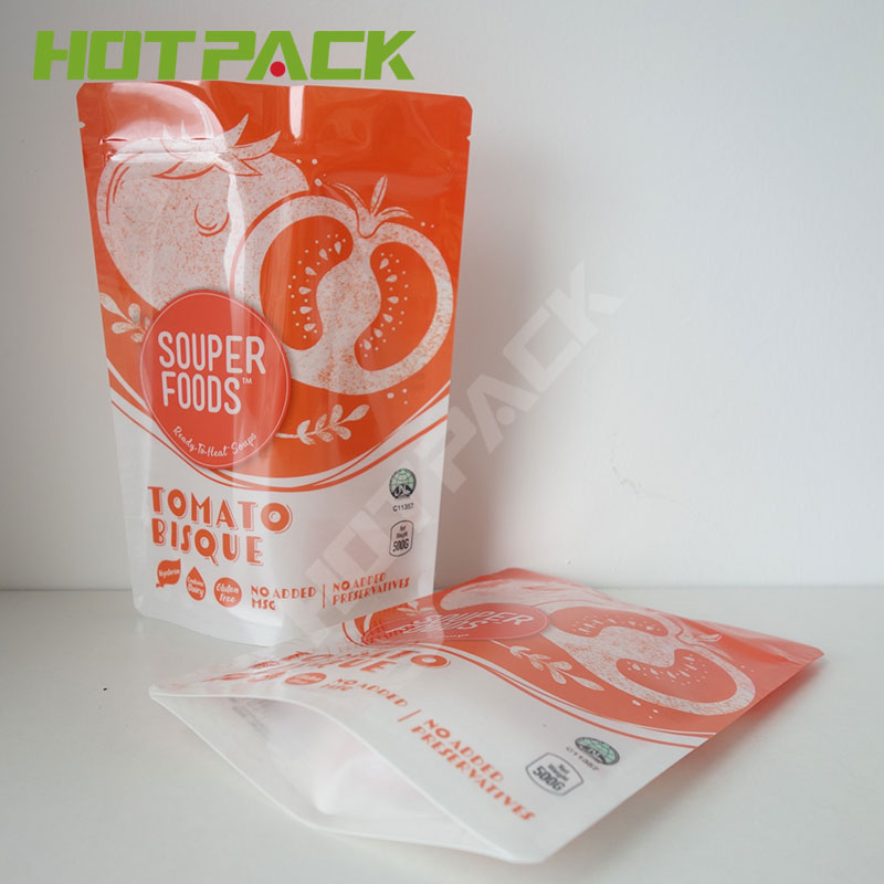 Colorful customized design liquid packaging bag soup stand up zipper plastic doypack |