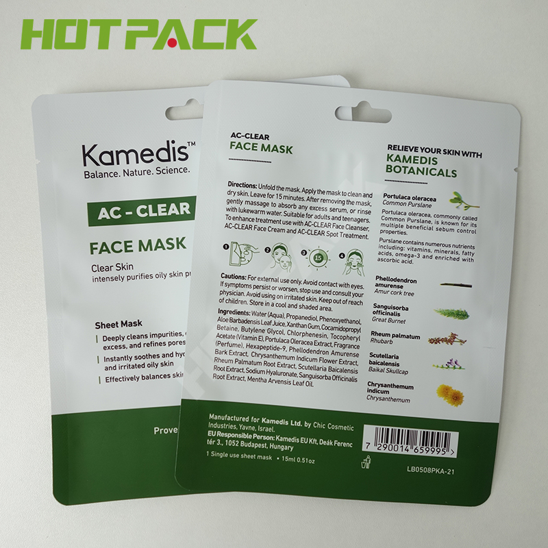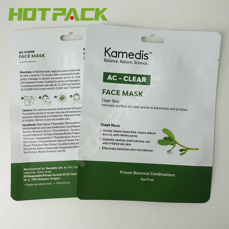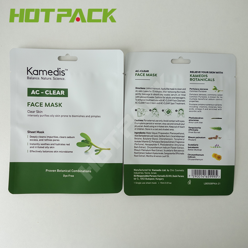 Custom logo printing aluminum foil three side sealing mylar facial care bags