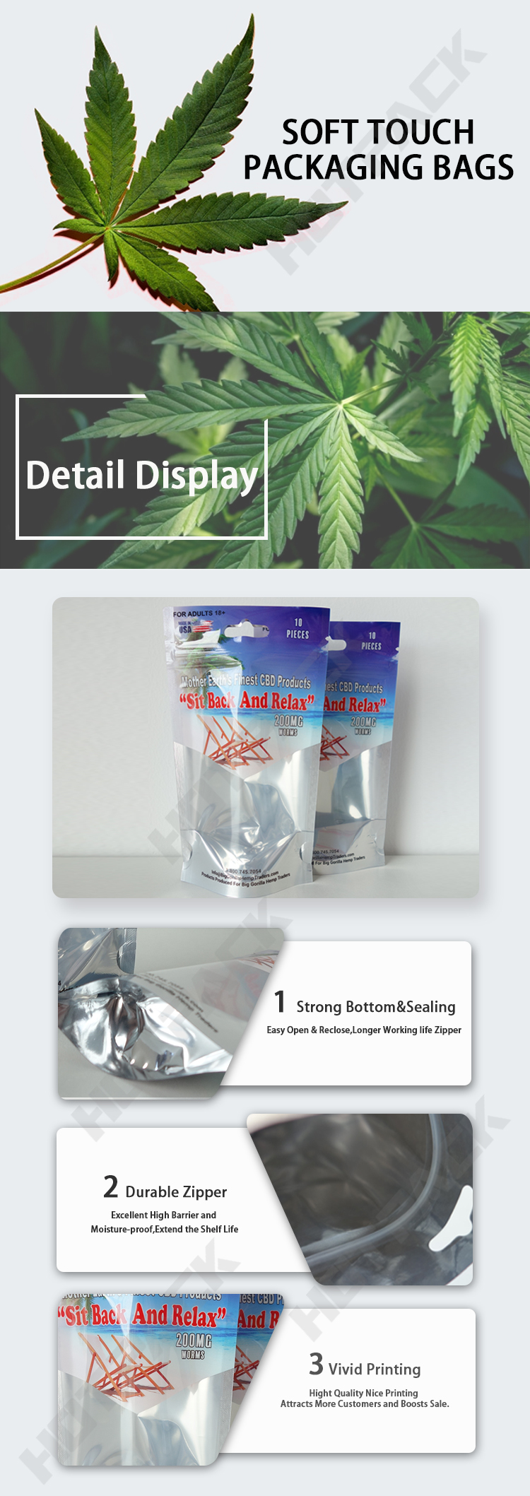Custom printed metalized foil standing plastic packaging weed mylar ziplock bags