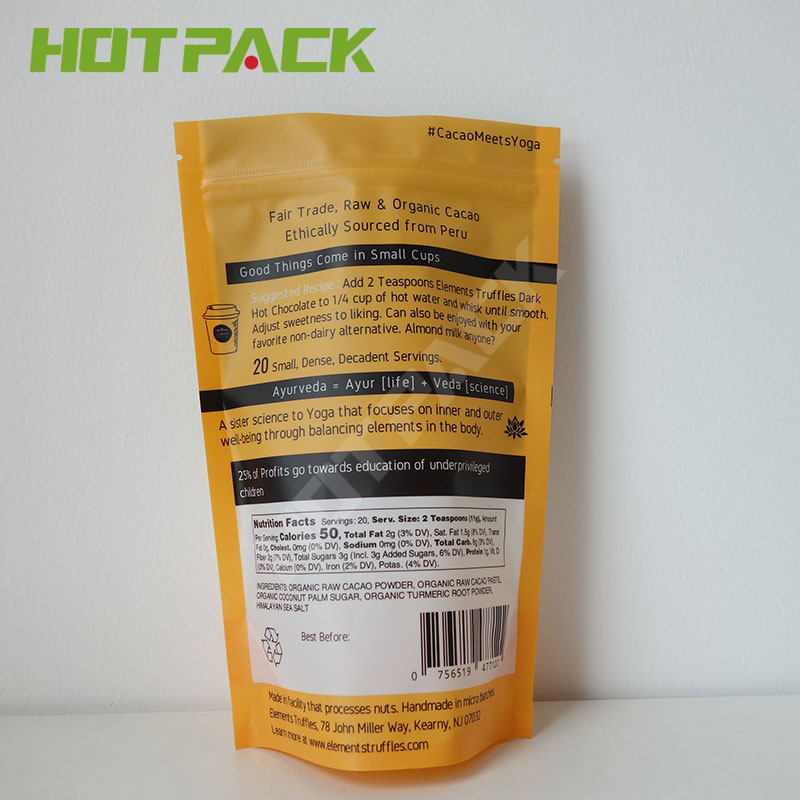 Laminated material:PET/PE,PET/VMPET/PE,BOPP/VMPET/LLDPE (Aluminum Foil),Kraft Paper Printing/PE,ect. |