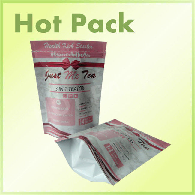Health 3 In 1 Teatox Pink Color Aluminum Foil Stand Up Bag With Zipper