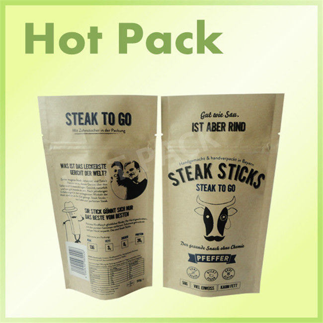 Laminated Zipper Kraft Stand Up Pouches , Personalized Snack Packaging BagsLaminated Zipper Kraft Stand Up Pouches , Personalized Snack Packaging Bags
