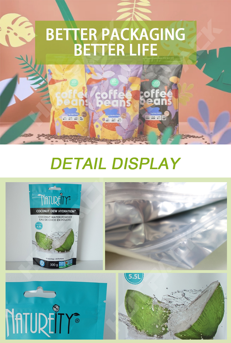 Wholesale custom aluminum packing bag for coconut powder stand up bags with euro hole