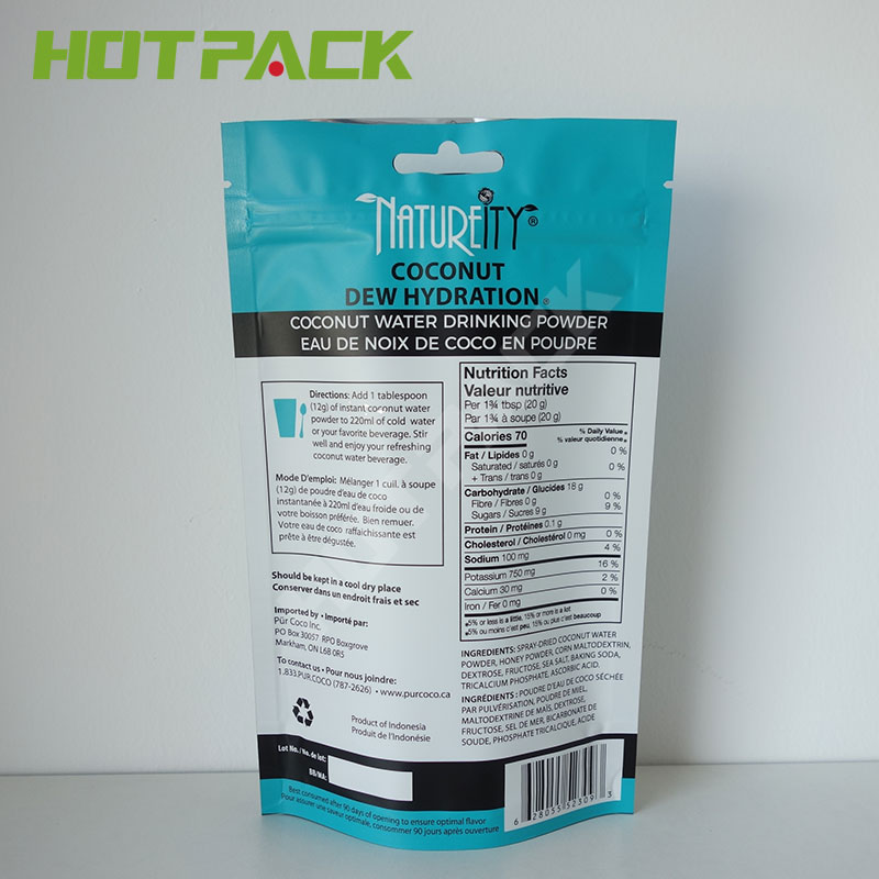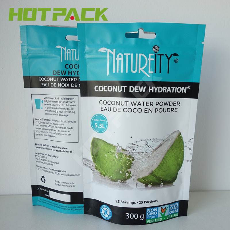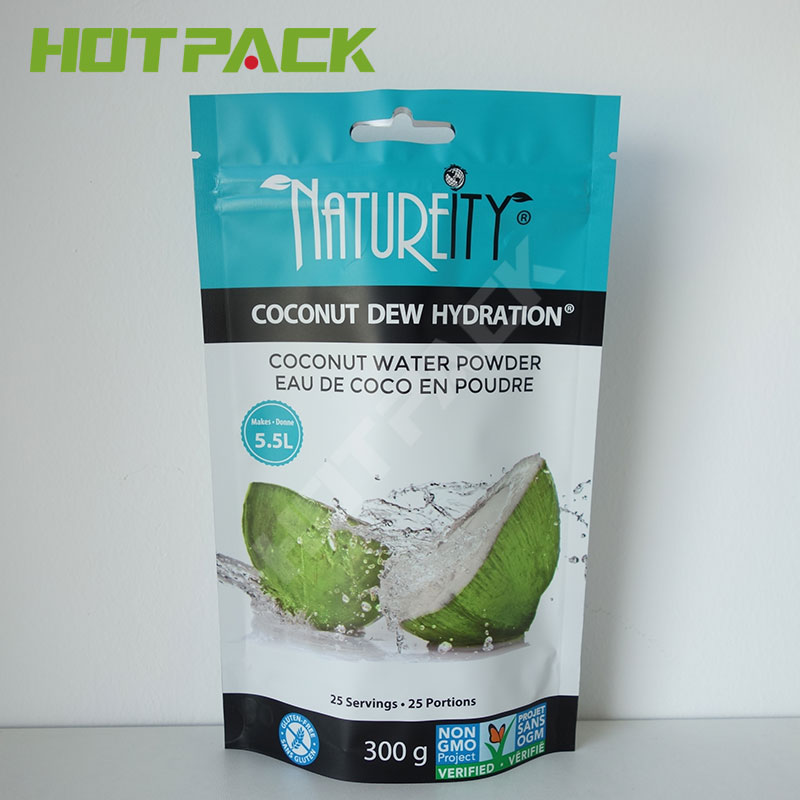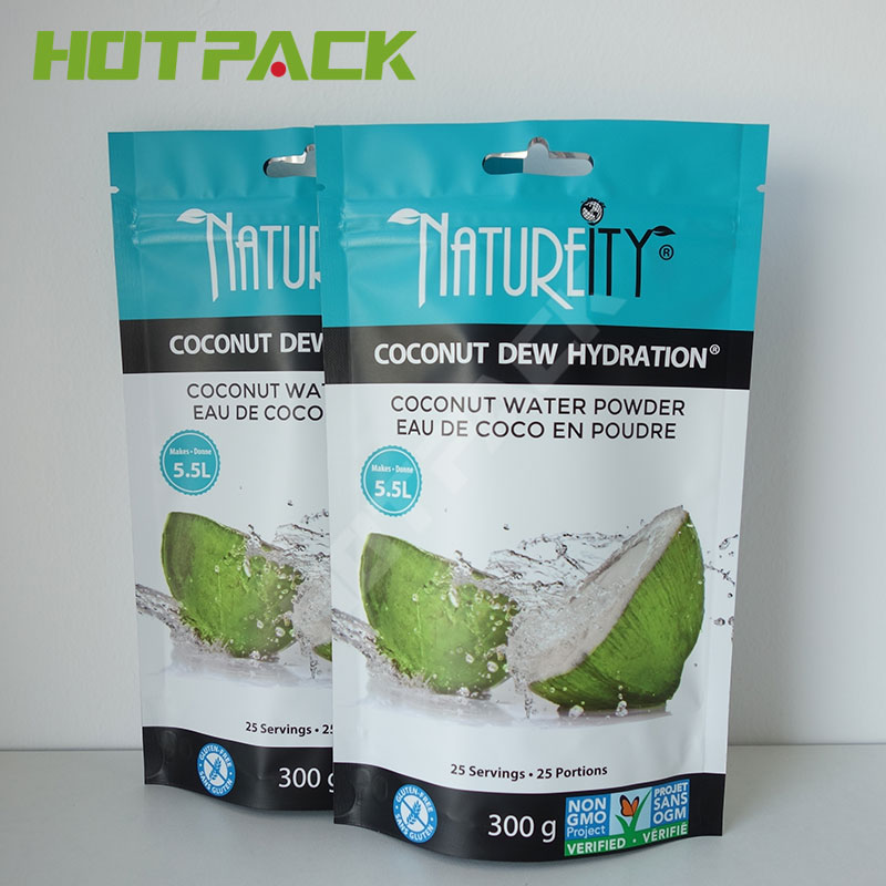 Wholesale custom aluminum packing bag for coconut powder stand up bags with euro hole |